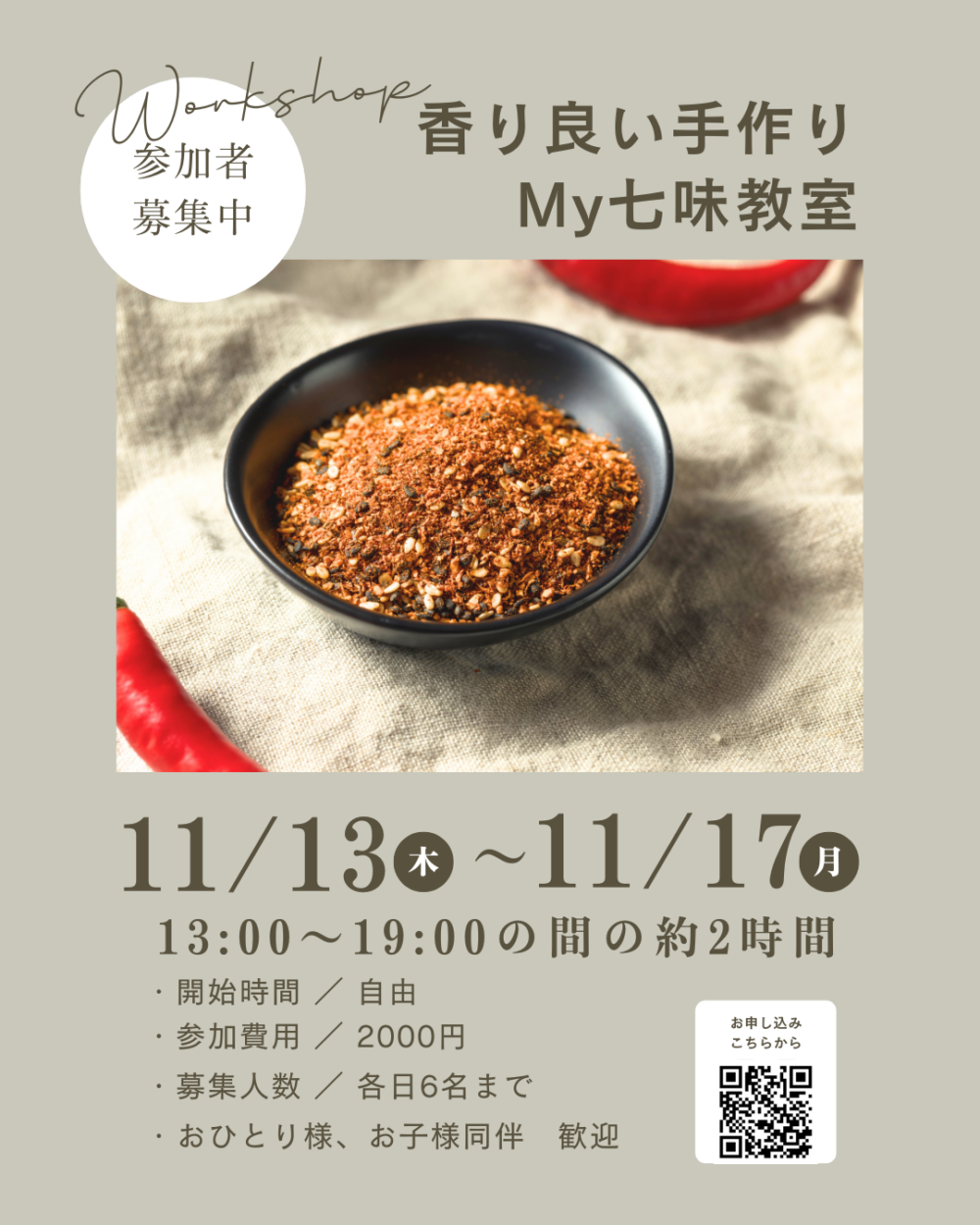 自分の食卓を豊かに彩る、最高の「My七味」作りにぜひご参加ください。